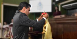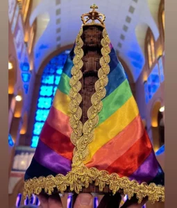 Na última segunda-feira (18), uma imagem de Nossa Senhora coberta com uma desrespeitosa bandeira de arco-íris remetendo a grupos LGBT